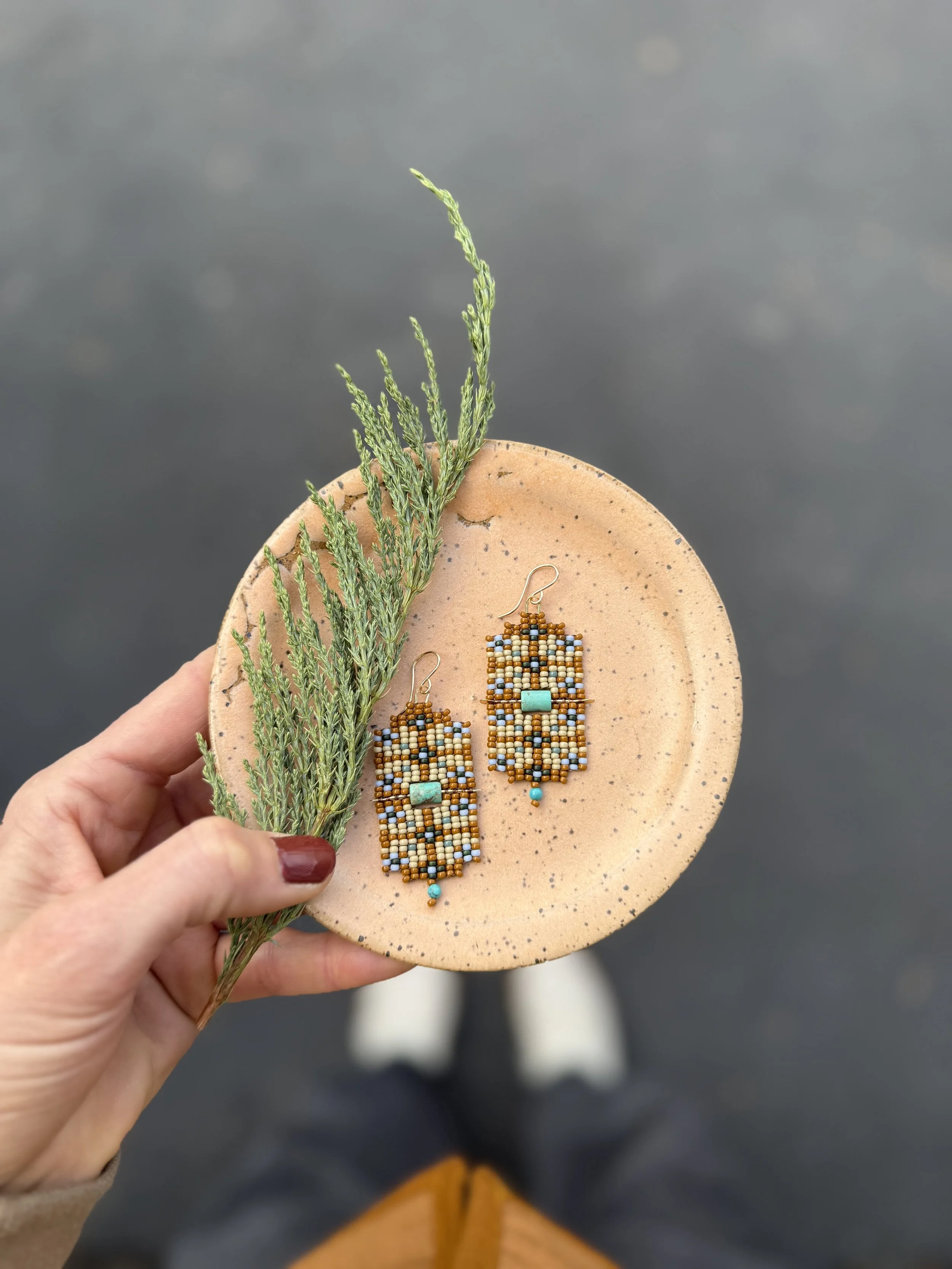 Cat Widner’s work is derived from the land, each bead a metaphor for the grains of desert sand, the colors reflecting those we see outside, each metal piece formed to carry the organic and geometric shapes we find in nature. Her desire to create is intrinsic, it is a necessity. It belongs in the space between human and nature, it speaks to the connection, the relationship, and the love that lives there.